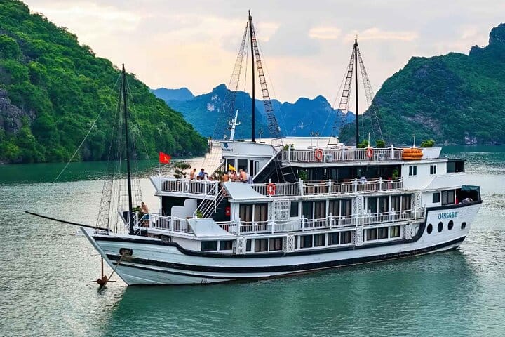 One of the largest boats in Halong Bay, the Oasis Cruise, offers a fantastic journey specially designed for young travelers. With activities including kayaking, a water trampoline, swimming, boat jumping, beach volleyball, and football, it offers an enthralling Halong Bay tour. For those seeking beautiful scenery, excitement, and the chance to make new friends, this exciting and fun experience is excellent. The Cruise, which set sail in September 2017, has cutting-edge technology that will elevate your trip to Vietnam even further.